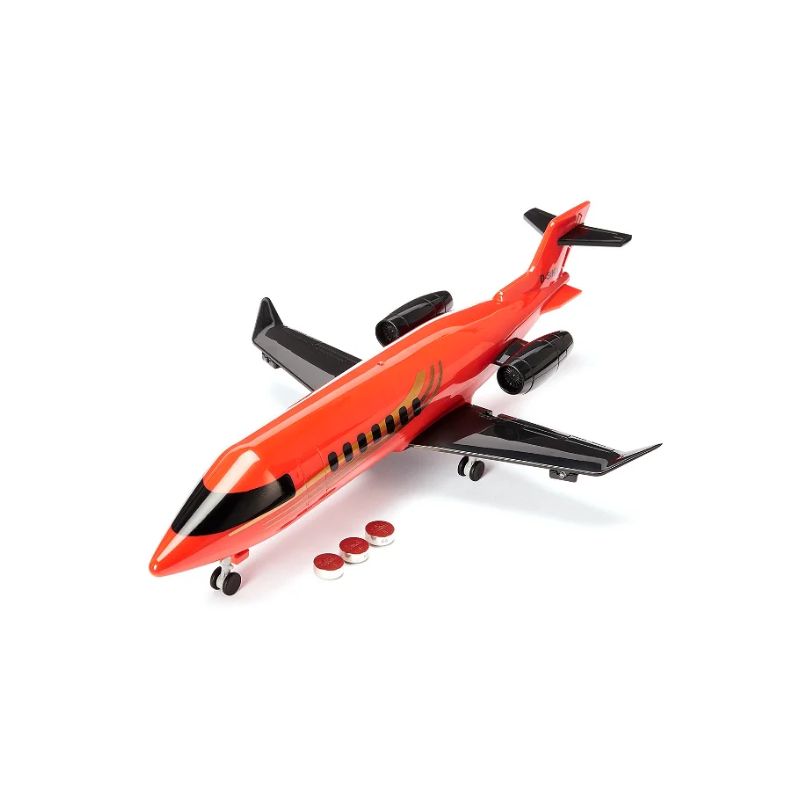 Las estrellas de alto perfil y los empresarios importantes disfrutan regularmente del lujo, pero para la mayoría sigue siendo sólo un deseo anhelante: ¡volar en un avión de negocios! Independientemente de los horarios de vuelo fijos y de los lugares de salida, siempre despega cuando es necesario, sin necesidad de hacer colas molestas en el mostrador de facturación. Para despegar con los modernos aviones de negocios de la flota siku no es necesario ni siquiera haber llegado a la liga de los grandes vuelos. Su tren de aterrizaje con ruedas de goma se puede plegar y extender para el despegue y el aterrizaje. Su fuselaje de plástico es rojo, las alas y la cola son negras. El avión dispone de siete luces LED cuya disposición y frecuencia de intermitencia se han reproducido fielmente, a saber: una luz de aterrizaje y una luz de posición trasera con luz blanca, dos luces de posición rojas intermitentes debajo y encima del avión, una luz de posición verde en el punta del ala derecha y una luz de posición roja en la punta del ala izquierda. Así podrás salir libre y espontáneamente en cualquier momento, ¡al menos en la habitación de los niños! Incluye 3 pilas LR44.