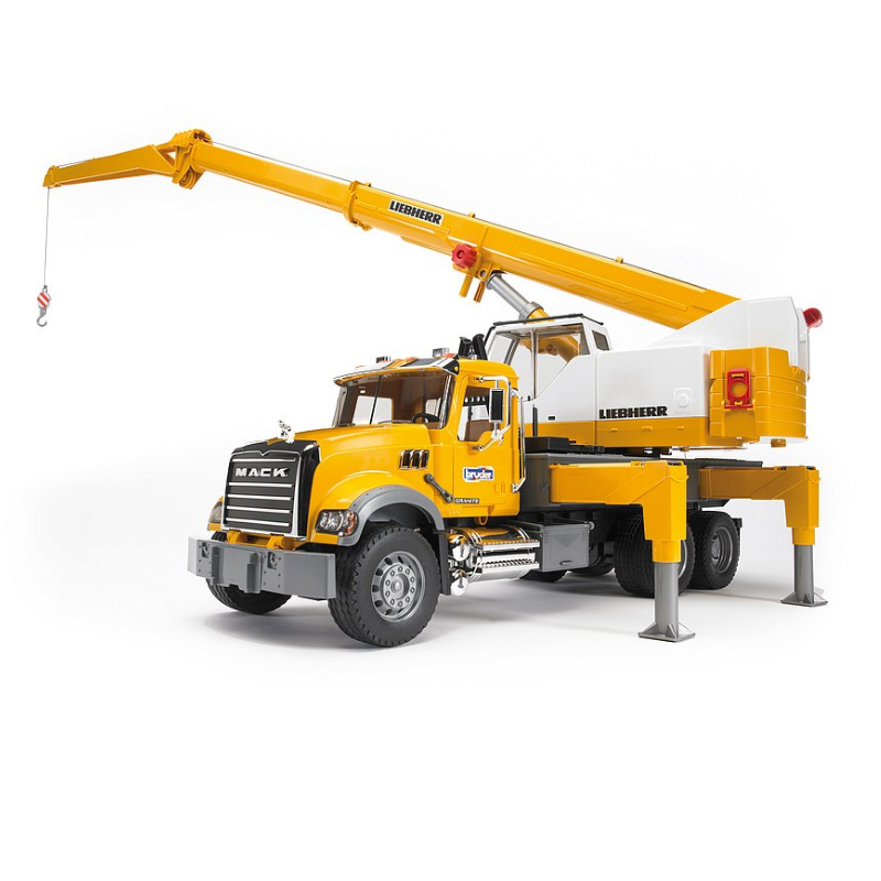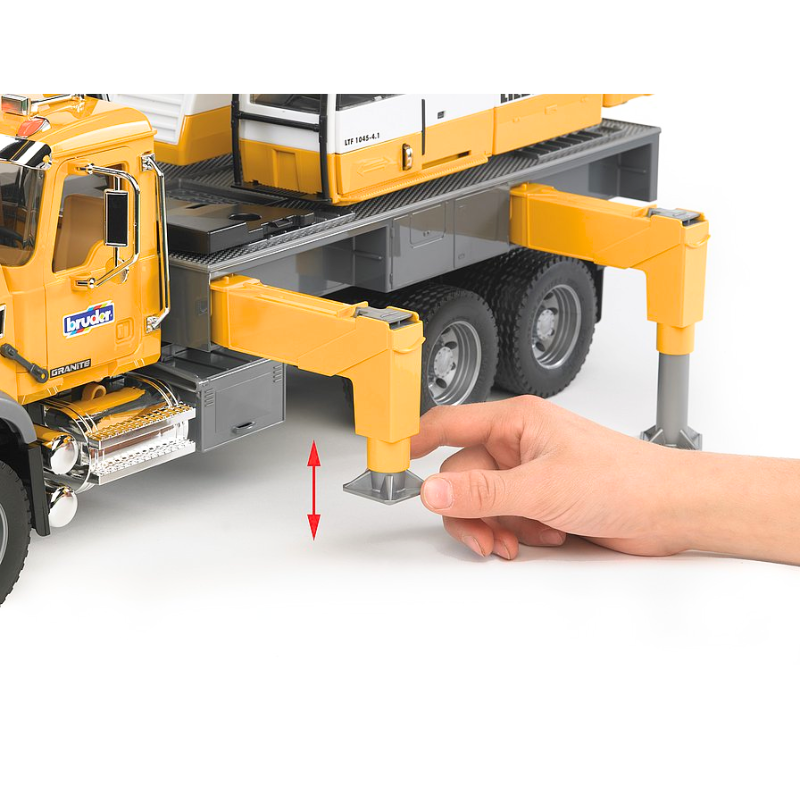 El impresionante camión grúa de Liebherr domina literalmente la gama de vehículos industriales de BRUDER. Al ampliar la longitud telescópica, el camión grúa ya tiene una altura considerable y se puede ampliar aún más con un brazo adicional. Nuestros pequeños clientes quedarán impresionados, porque cuando el brazo de la grúa está en toda su longitud con el accesorio adicional y completamente elevado, alcanza 1,3 m de altura y se eleva por encima de algunos de los pequeños constructores.