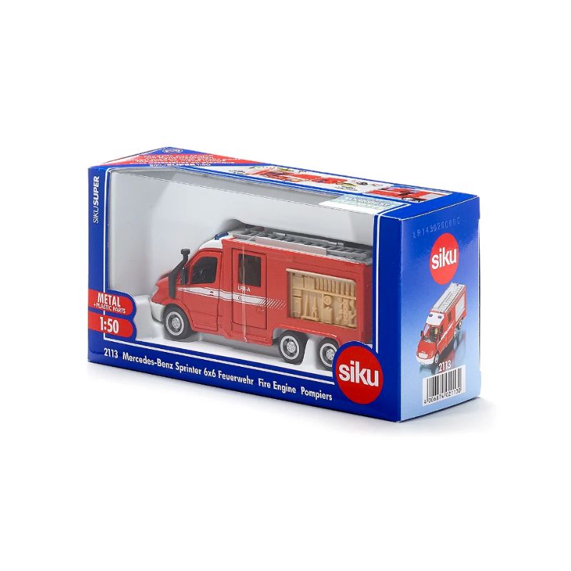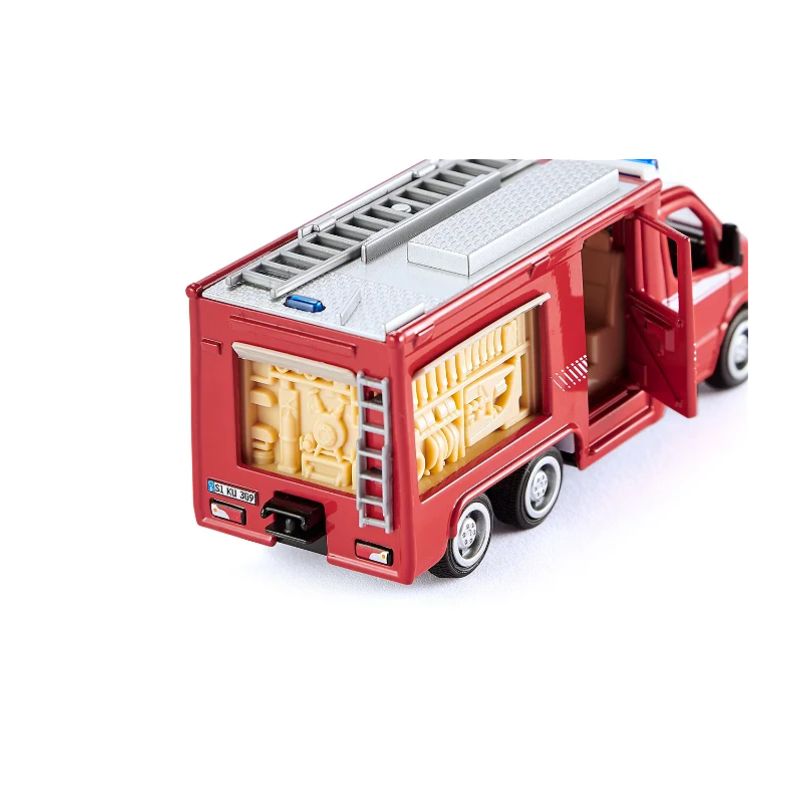 El velocista del departamento de bomberos para todas las ocasiones. Con 3 ejes y tracción total, incluso los desplazamientos en terrenos accidentados no suponen ningún problema para este modelo. Las puertas de amplia apertura de las cabinas del conductor y de la tripulación permiten una salida rápida. Las nuevas solapas laterales y traseras desaparecen en la carrocería cuando se abren y ofrecen una visión clara de las estructuras detalladas. La escalera del techo es desmontable.